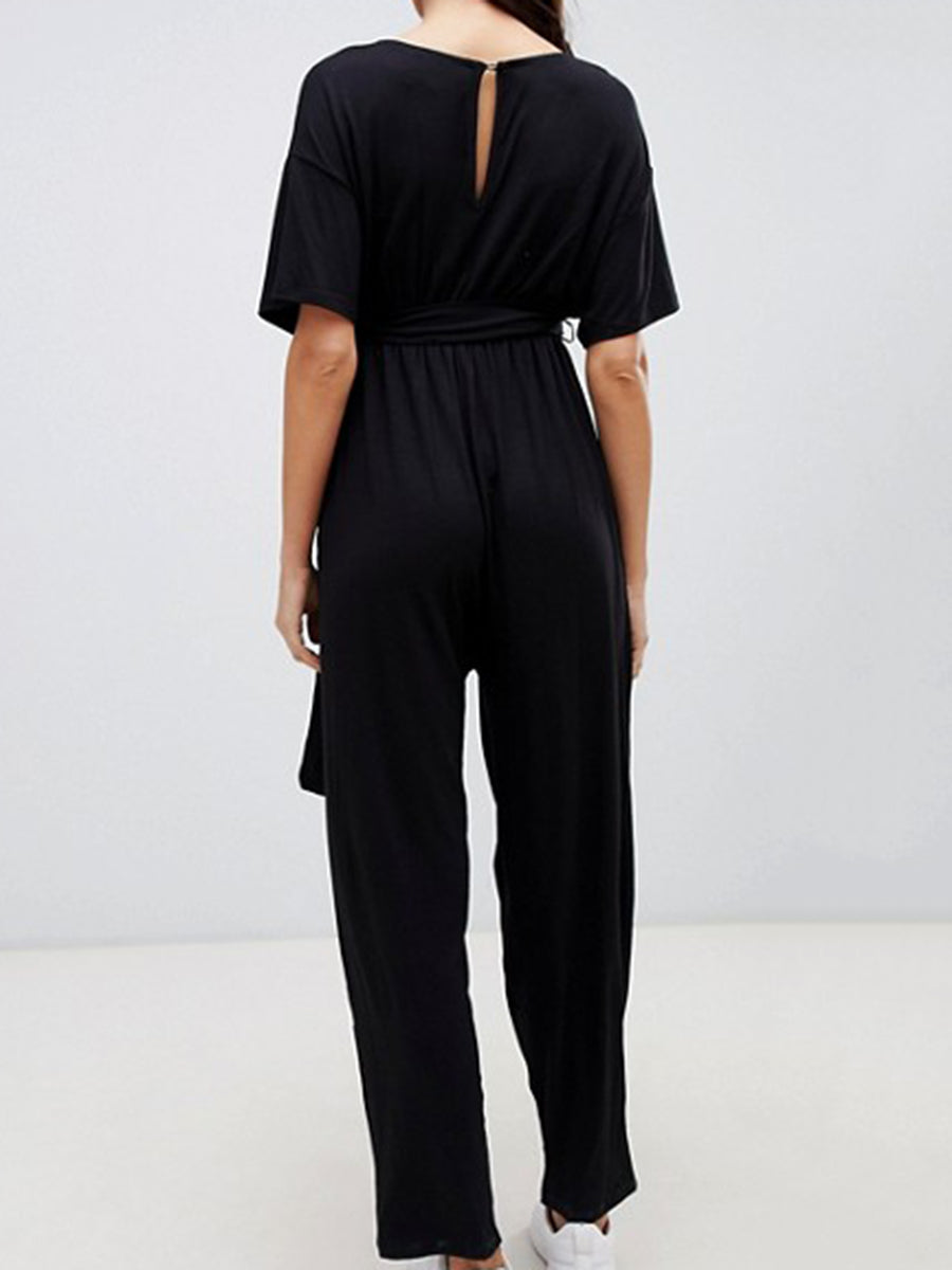 Product: Casual Loose V-neck Short Sleeve Solid Color Pregnant Women's Jumpsuit