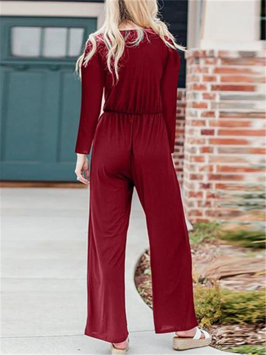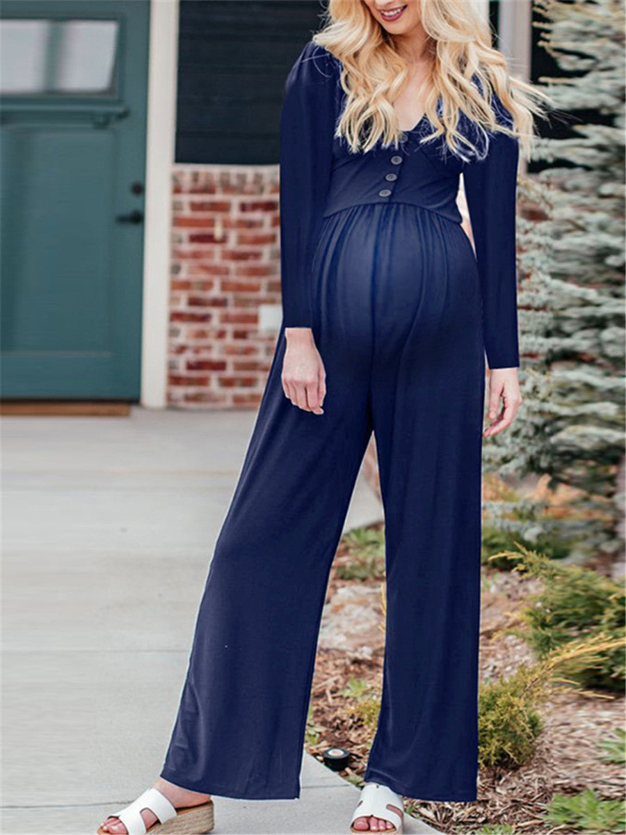 Product: Maternity V-neck Long Sleeve Button Wide Leg Jumpsuit