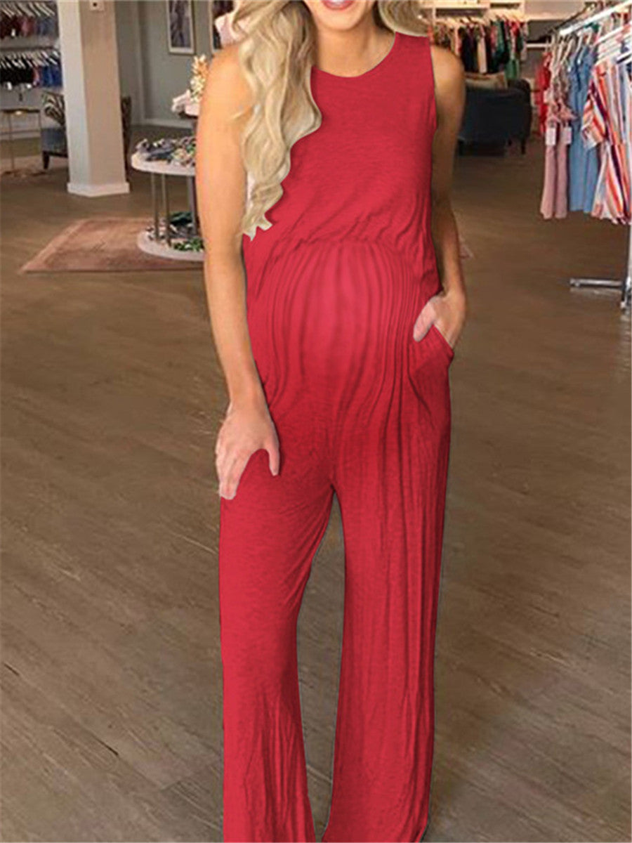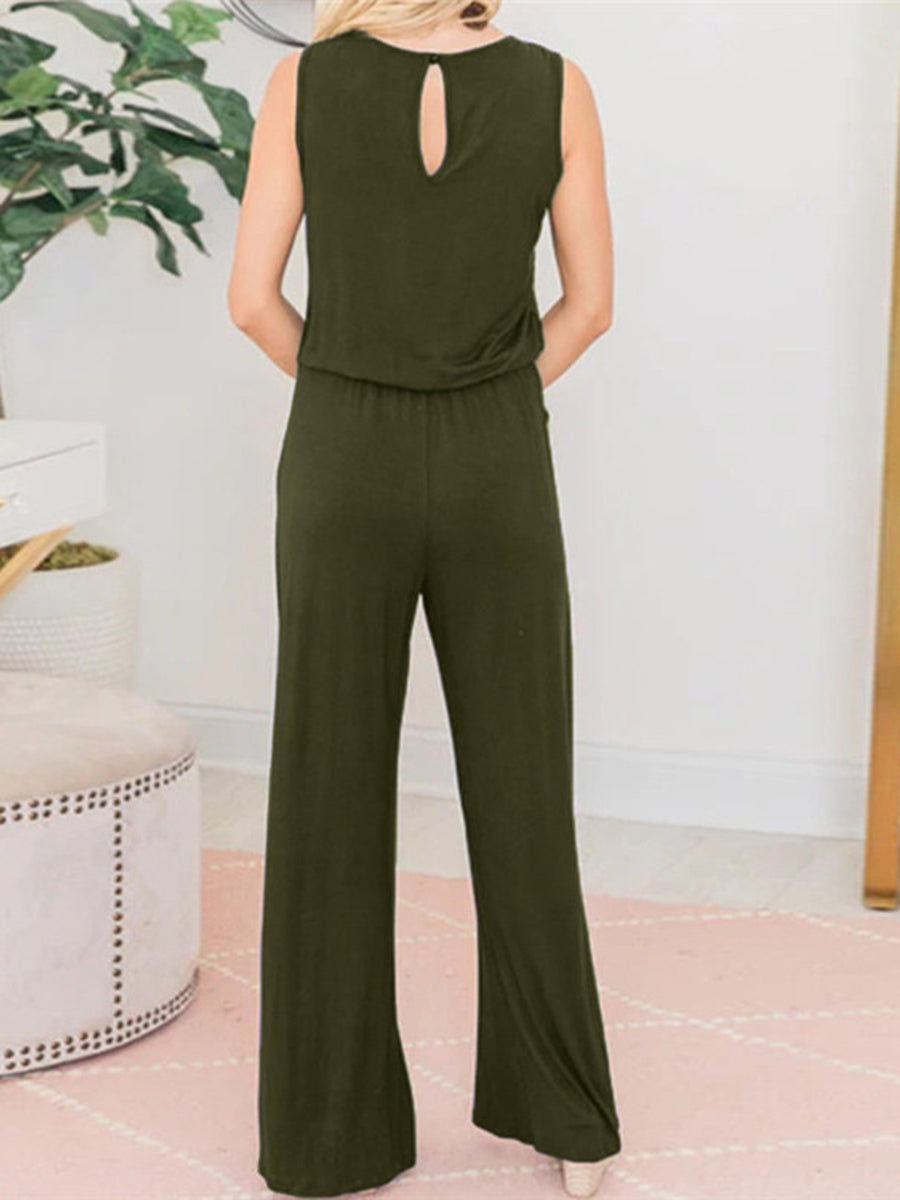 Sleeveless Round Neck Top Wide-leg Casual Jumpsuit