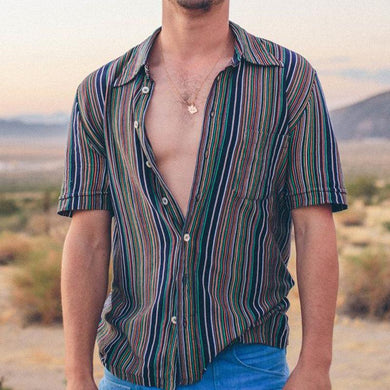 Men Retro Striped Printed Short Sleeves Shirt
