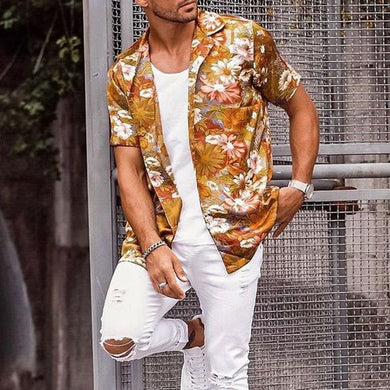 Men Spring Fashion Printed Short Sleeves Shirt