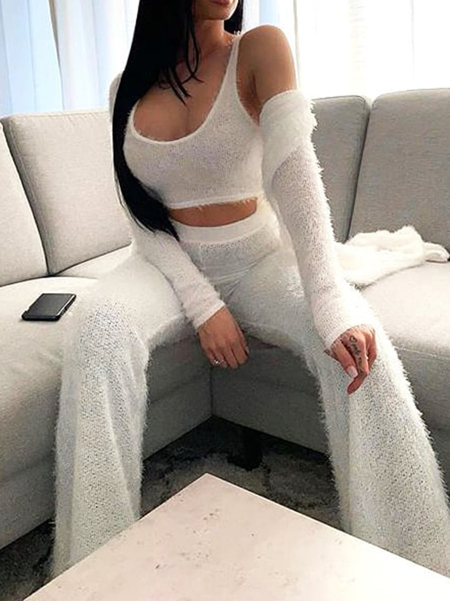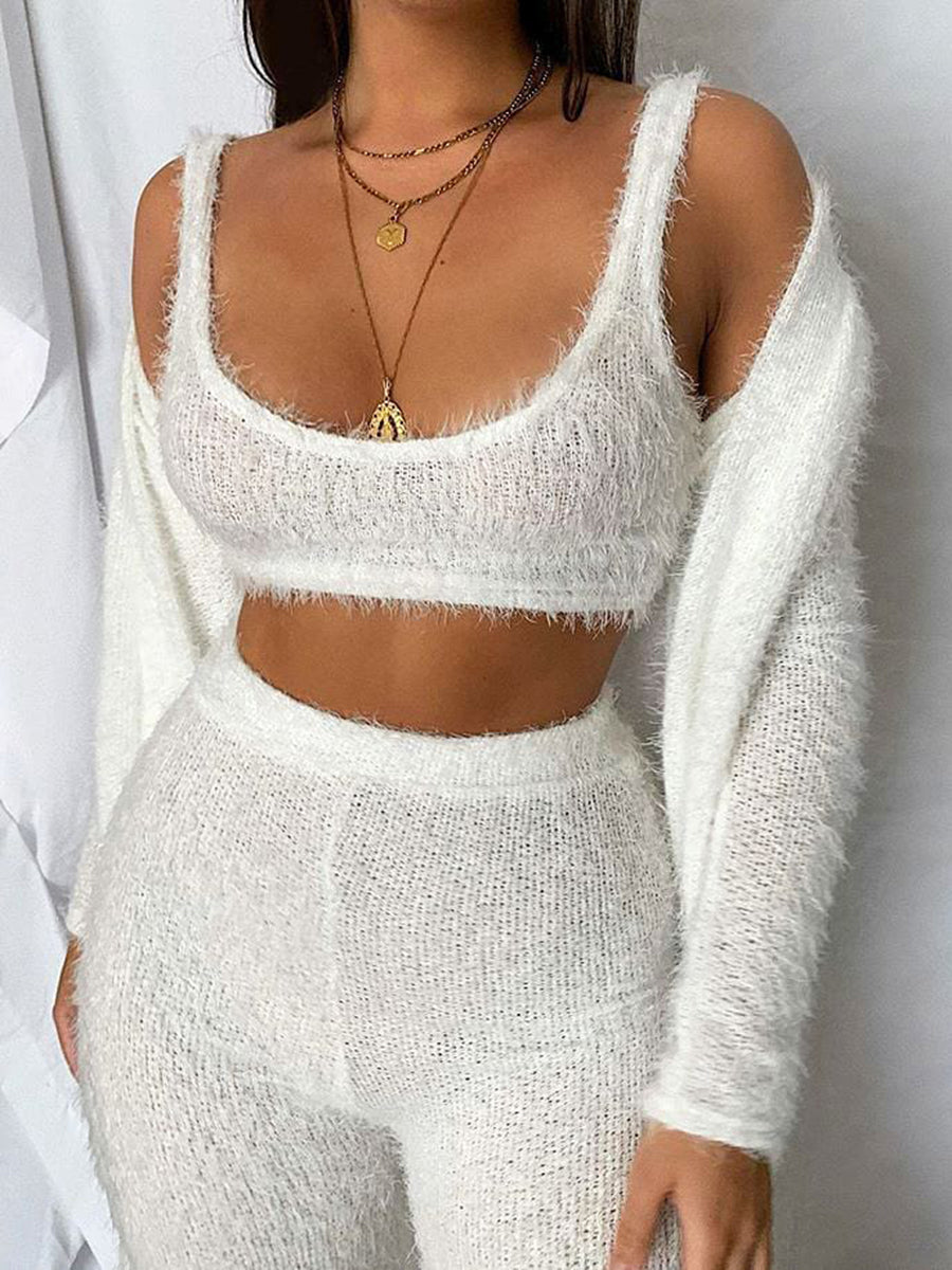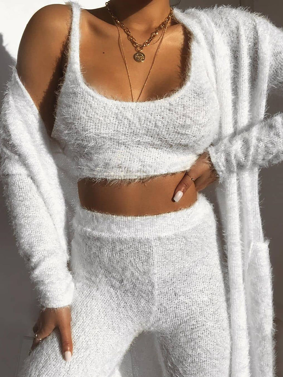 Product: Long Cardigan Tank Top and High Waist Trousers Knitted Three-piece