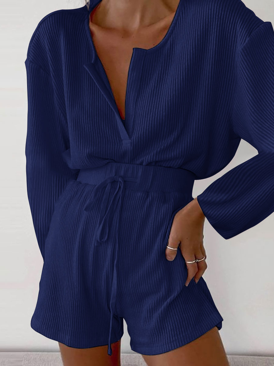 Product: Long Sleeve Top High Waist Shorts Casual Loose Suit