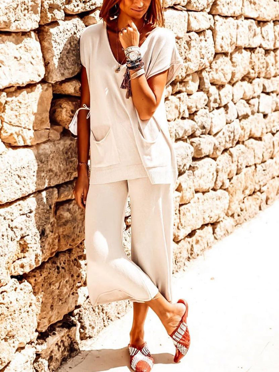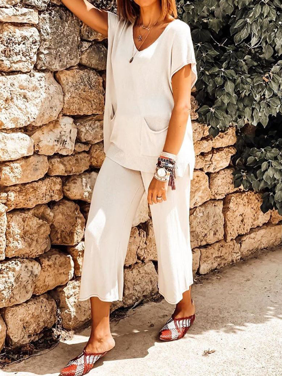 Product:Pure Color V-Neck Casual Pocket Suit