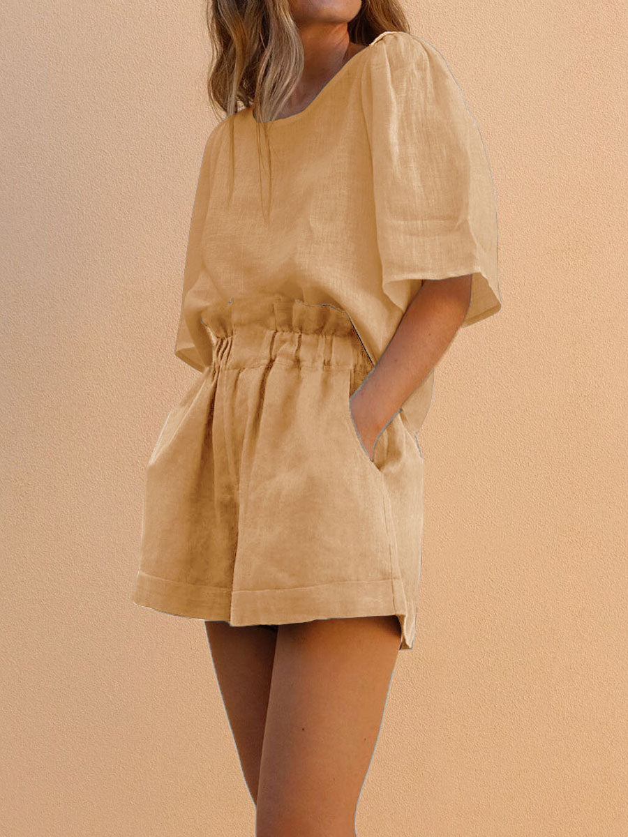 Product: Short-sleeved Top and High-waist Shorts Women's Suit