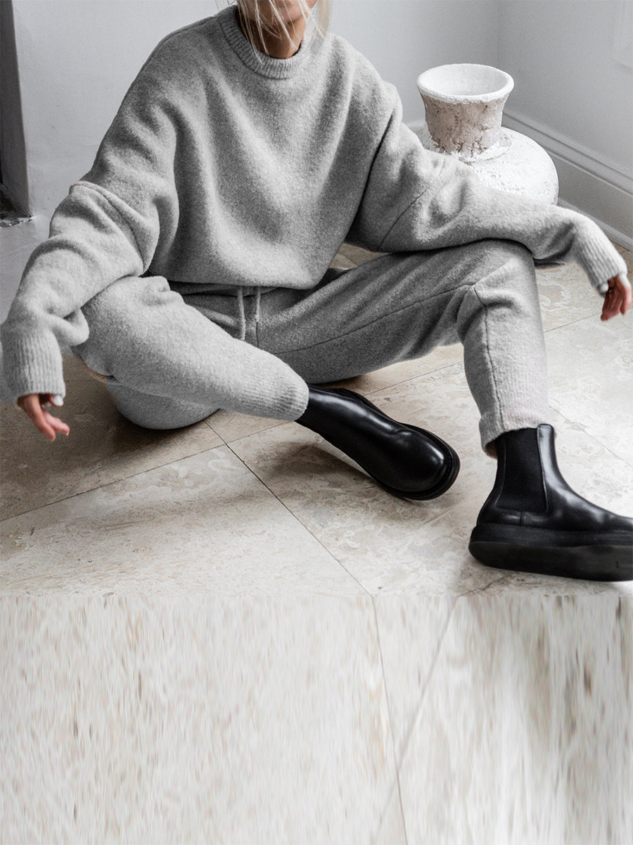 Product: Simple Casual Loose Round Neck Sweater Pants Knit Suit