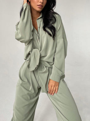 Vintage Lapel Button Shirt Loose Trousers Two-piece