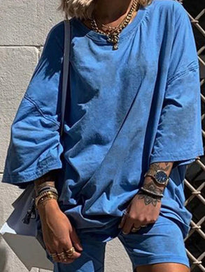 Solid Color Three-Quarter Sleeve Round Neck Suit
