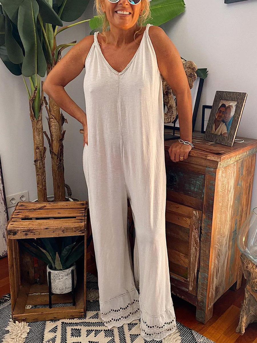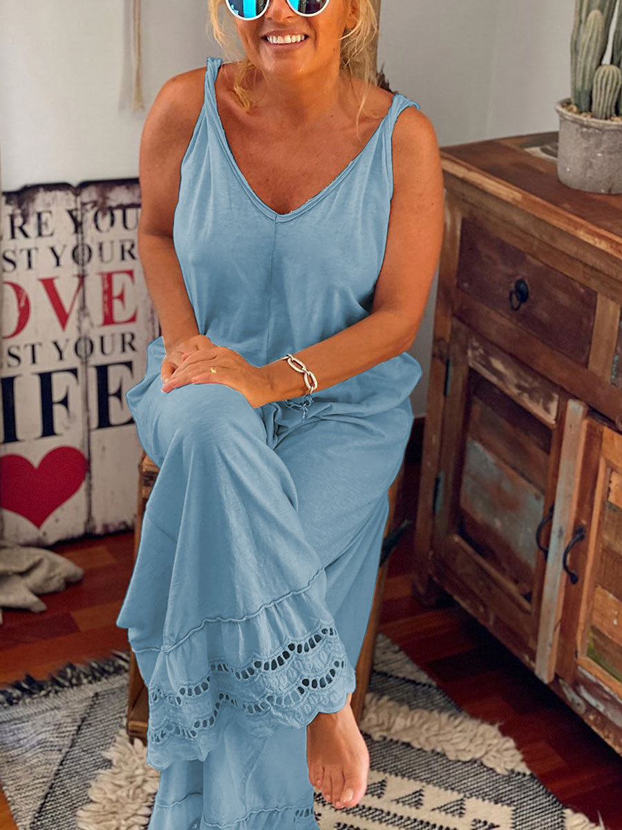 Product: Solid Color Sling Hollow Lace Jumpsuit